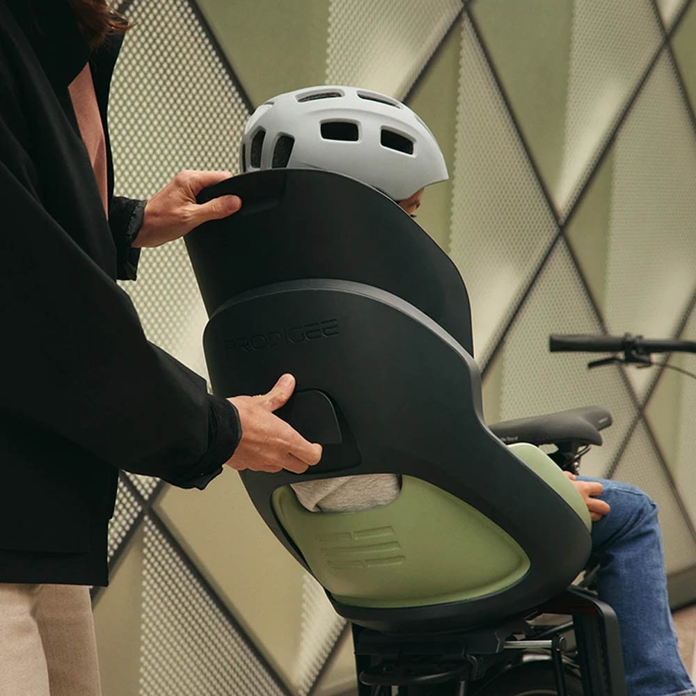 Le siège enfant arrière Prodigee ICON est conçu pour offrir un haut niveau de sécurité et de confort lors des déplacements à vélo, en ville comme hors agglomération. Il est équipé d’un rembourrage en mousse EVA absorbant les chocs, résistant à l’eau, et d’un coussin confortable assurant un bon maintien de l’enfant.